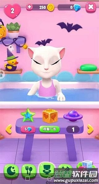 每天都需要洗澡,用面前的肥皂为她擦拭,直到出现飞行代币;当身体出现异味或苍蝇时,就表示该洗澡了。点击左上角医疗箱,可以为安吉拉进行护理;如果互动时不慎让她受伤,也需要在这里治疗。