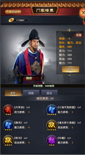 5、门客技能升级后,在关卡挑战中的效果会显著增强;因此提升技能也是培养的关键环节。
