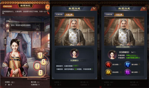4、红颜培养:有侧重地提升红颜亲密度,亲密度越高,所生子嗣属性越强,对势力加成越大。