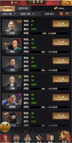 7、强化门客壮大势力:直接提升门客能力,从而增强自身影响力。