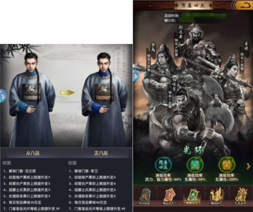 3、提升品级:通过完成每日任务可获得经验,进而提升官品等级;品级晋升也会带来相应的势力增长。