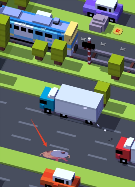 2、马路:最具挑战的场景,不断驶过的车辆考验玩家的反应与操作,不同车道车辆密度各异;