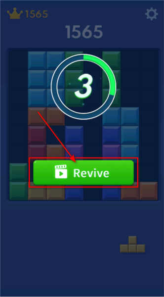 2.可以点击下方的revive按钮,通过观看广告来复活角色,在本站下载安装的版本支持免广告复活,玩家无需担心。