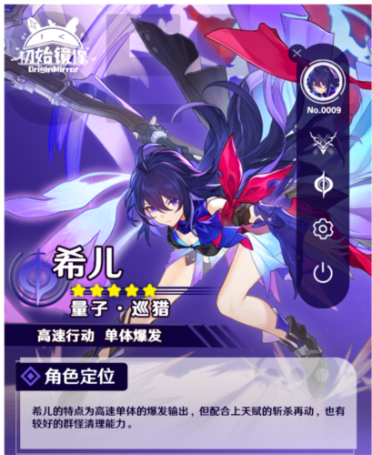 希儿是量子属性的巡猎命途角色,其战技可对单体敌人造成量子伤害并提升自身速度;终结技能立即进入增幅状态,对目标造成高额量子伤害。天赋「再现」在消灭敌人后触发,提供一次额外行动机会并进入增幅状态。希儿擅长单体输出与连续收割,在合适队伍搭配下可实现多回合连动。
