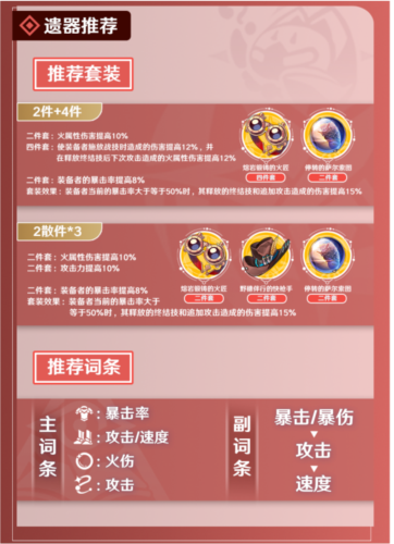 副词条方面,优先选择暴击率、暴击伤害、攻击力与速度,双暴属性尤为重要。
