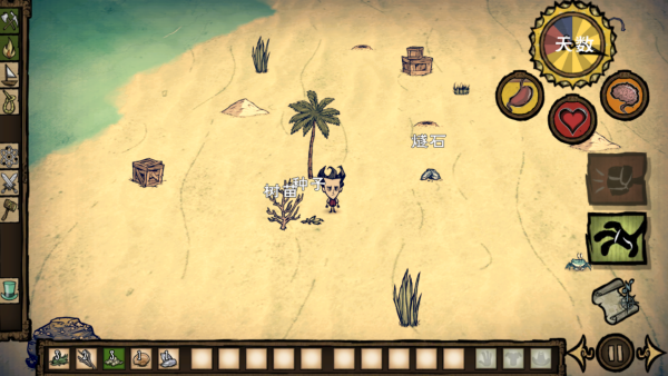 1、优先收集树枝、干草与浆果,尽快制作十字镐以获取更多燧石;