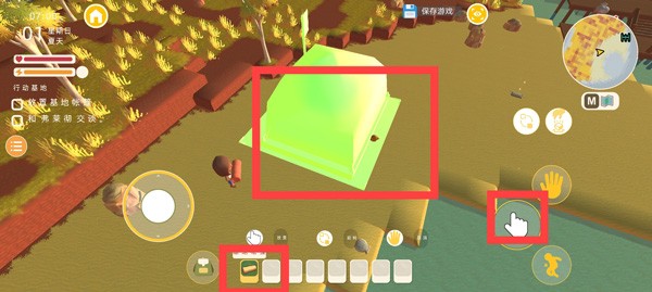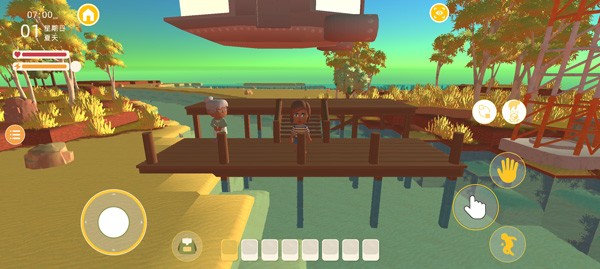 4、使用屏幕左侧虚拟摇杆控制角色移动,右侧按钮负责拾取、确认、跳跃等互动动作。