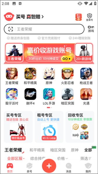 【账号回收】:一键回收闲置的游戏账号,处理简单方便。