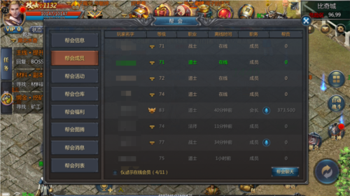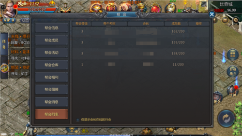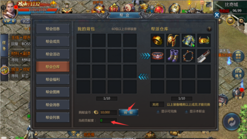 通过帮会仓库,捐献金币或装备可获得帮贡,帮贡可用于兑换仓库内储存的高级装备。