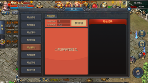 帮会福利界面允许玩家发放红包或抢夺他人发出的红包,增强互动乐趣。