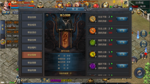 在帮会图腾处消耗帮贡,可以永久提升角色的各项属性上限。