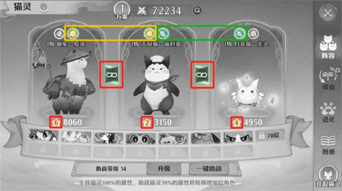 第二培养优先级:利用系统赠送的猫灵,尽快凑出猫灵连锁效果。