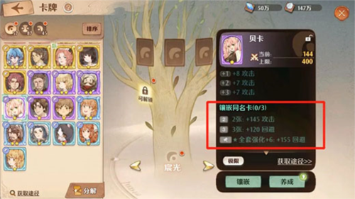 第三培养优先级:卡牌系统核心在于凑齐整套,之后可进行适当强化与洗炼。