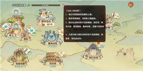 游戏前期经验活动有限,每日10万左右的经验上限不易触及;但升至50级左右时,常会遇到任务未完成而经验已达上限的情况。此时玩家仍可继续完成任务,超额部分的副本经验将按比例转化为技能熟练度;当熟练度积累到一定数值,可兑换为技能点,用于提升技能等级。