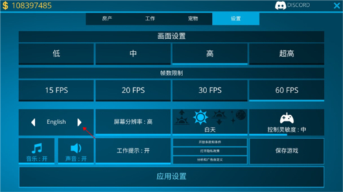 在语言设置里,将选项切换至english,游戏便会自动转换为中文界面。