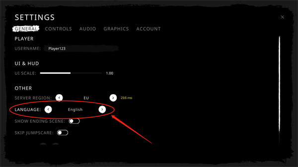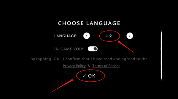 首次进入游戏可见如下界面,点击【English】右侧按钮调整语言。