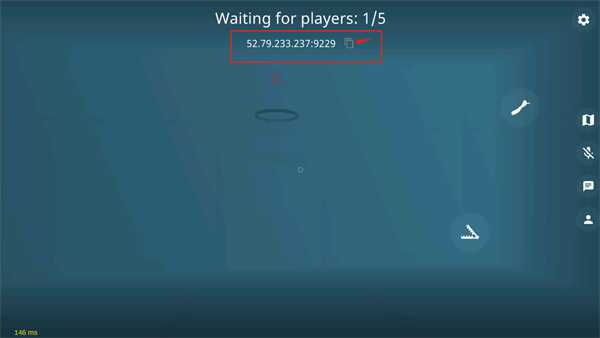 游戏加载时,顶部代码为房间号,可点击箭头所指按钮复制并分享给好友。