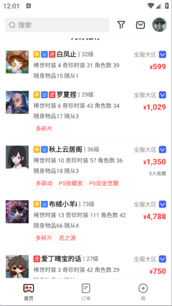 5、可收藏中意账号,联系卖家咨询,也可上架自己的游戏数据。