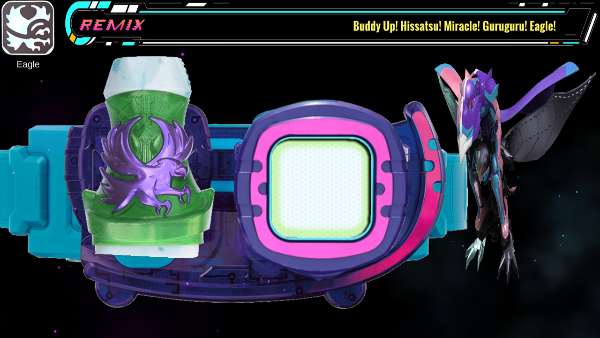使用“Revice驱动器”,搭配“猎雕罪恶印章”变身的派生形态。拥有猎雕基因信息,能够飞行并操控气流。左复眼具备夜视功能,右复眼拥有高精度瞄准能力。手刀结合气流可产生锐利冲击波,或通过手臂动作改变风形,制造定向强风或旋风。可在脚下形成气流立足点实现空中步行,亦能瞬间产生下压力增强踢击威力。变身音效为“Buddy up!暴乱!腾飞!翱翔天际!Eagle!来细数你的羽毛吧!”。