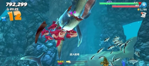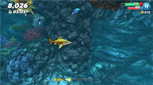 9、狂暴进食模式:释放鲨鱼的捕食潜能,体验巨型化、冲撞、爆炸与催眠等多种强力状态。