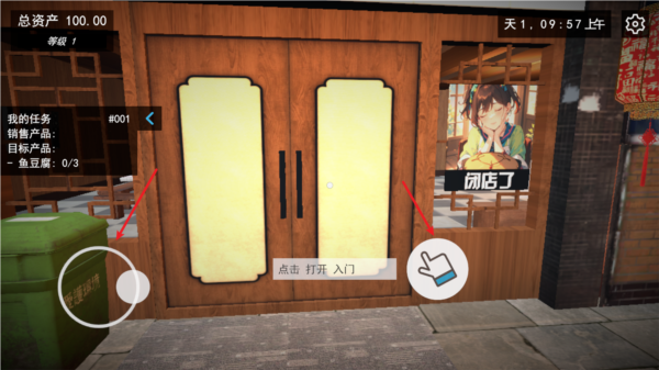 1、游戏开始后,使用左侧虚拟摇杆控制角色移动,接近可互动物品时会显示相应按钮。