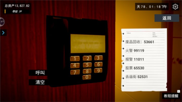2、收废品:走到大门附近,在你的右手边可以看到一个小电话;点开它,输入废品回收单上提供的号码,然后按下左侧的呼叫键即可联系回收人员。