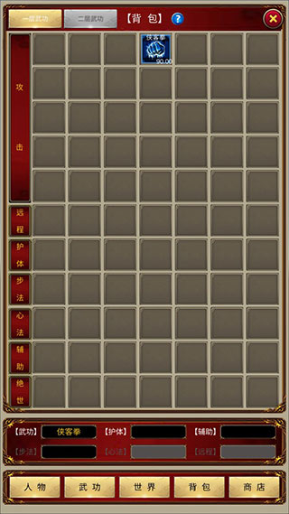 若商店未刷新,可退出游戏后删除当前角色,重新创建进入以刷新商店库存。此方法能让开局更顺畅,但非必需步骤,游戏本身支持自由体验。游戏内含五种攻击型武功:拳法攻击较低但防御最高,速度与恢复最慢,闪躲较低,优势在于高防御与快攻速;剑法攻击与防御略逊于拳,速度、恢复与闪躲稍高;刀法攻击高于剑,防御低于剑,速度、恢复与闪躲进一步提升;枪法攻击高于刀,防御低于刀,速度、恢复与闪躲再次提高;斧法攻击达到顶峰,防御降至最低,速度、恢复与闪躲均为最高。