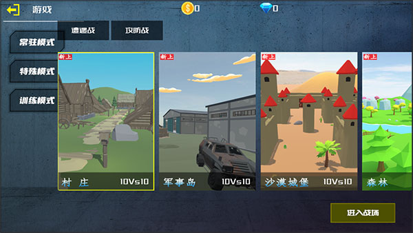 2、选择一种游戏模式并挑选一张地图即可进入战场。