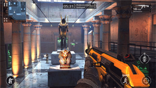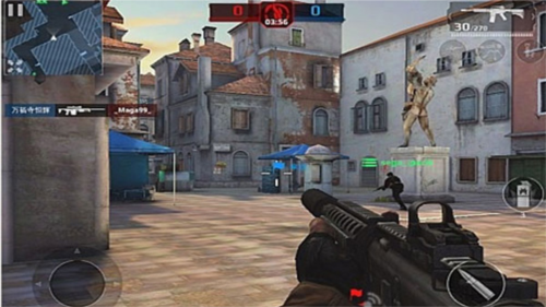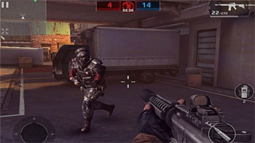 采用左侧虚拟摇杆移动、右侧按钮控制射击与动作的经典布局。在限定时间内,通过击杀敌方玩家获取积分。角色阵亡后可从基地复活,鼓励玩家与队友保持协作,共同推进战线。