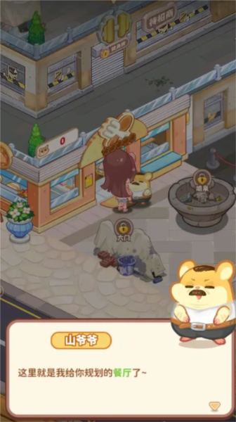 游戏开始时,山爷爷会协助解锁第一家餐厅店铺。