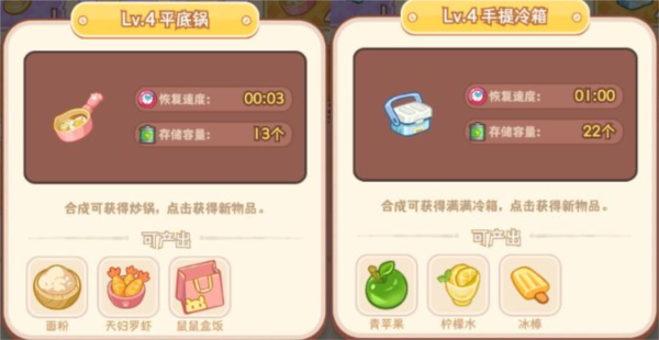 合成器用于生成各类合成元素,不同类别元素需对应合成器;例如面粉类需烤箱生成器,青苹果类需冰箱生成器;