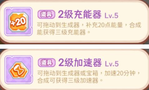 道具分为直接使用、对合成器使用、对合成元素使用三类;直接使用类如体力球、宝箱等,可增加相应资源;