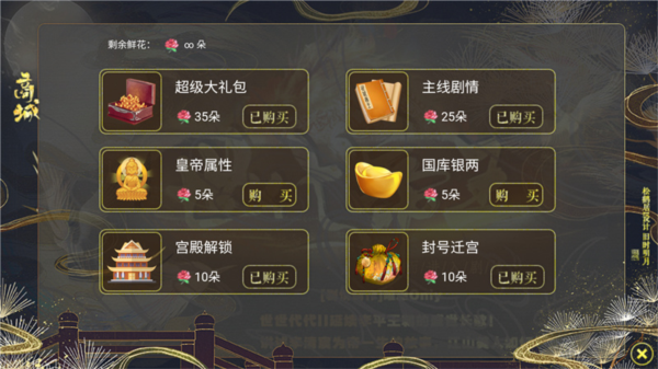 3. 进入鲜花商城后,可获取超级礼包、解锁主线剧情等物品,所有项目均已实现内购免费。