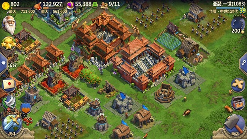 2、游戏中包含了建筑升级、外交贸易、资源争夺与城池攻伐等多种玩法。