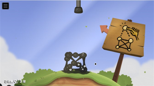 5、进入关卡后,通过拖拽粘粘球来搭建各种结构,以此完成闯关目标。