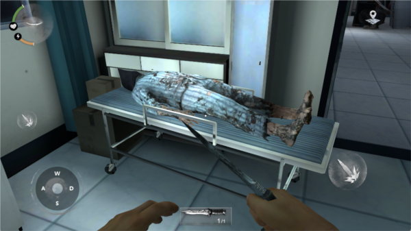 初次进入游戏会经历简单的操作引导,建议将灵敏度适当调高,便于后续瞄准与视角调整。游戏画面笼罩在阴森氛围中,玩家从实验室苏醒,需留意环境中发光的白色物体,它们通常是可以拾取的关键道具。开门向前探索,地图显示在界面右上角,注意查看方向。前方尸体上有一把匕首,这是最初的防身武器。精力值系统允许角色奔跑,但会持续消耗,需谨慎使用以应对紧急情况。