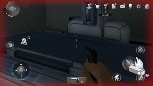 5、反击:利用枪支或武器台升级装备,也可潜行使用小刀进行致命一击。
