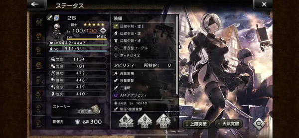 职业为剑士,通过尼尔联动活动限时获得;在竞争激烈的剑士角色中,2B仍占据一席之地;她具备极高的物理攻击力,并能使用剑与斧两种物理攻击方式;技能形态方面,两种攻击均包含单体三连与单体高伤技能;属性输出上,拥有稀有的暗属性全体二连击,可降低目标15%物理防御,属于破盾技能;其他如回血、自我增益、物理闪避等技能进一步丰富了其能力;自爆技能虽还原原作设定,但实际效果较为普通。