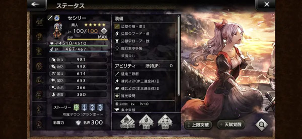 但塞西莉也存在缺点;作为商人角色,其物理攻击力成长有限,且法力值不高,技能消耗较大,难以像学者那样持续进行群体三连输出;可以说她具备了塞拉斯的技能形态,却未拥有相应的基础属性;总体而言,这是前期相当实用的角色,后期出场机会相对减少。