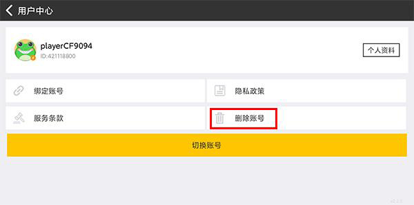 3、进入用户中心页面,选择删除账号选项。
