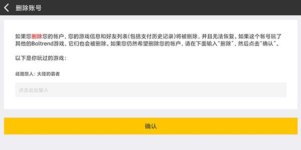 4、输入删除确认文字,点击确认;之后重复登录游戏流程,直到获得心仪的角色为止。