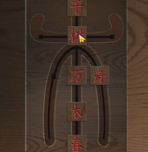 8、点击桌子上的箱子,并按照下图所示的步骤移动部件,即可获得六通鲁班锁。