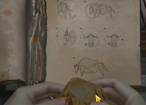13、依据之前本子中记录的步骤进行折叠,可以得到一只纸叠的黄牛。