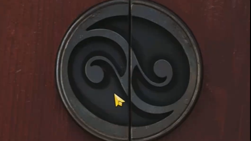 9、将其放入房门上的凹槽处,便能打开这扇木门。