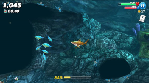 1、初期活动限于热带岛屿地图,注意黑色岩石无法穿越,红色障碍需要高级鲨鱼撞破,谨慎选择猎食目标,水母与鱼雷会造成严重伤害。