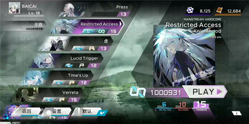 1、启动游戏后,你可以自由选择曲目与难度进行挑战;