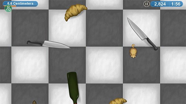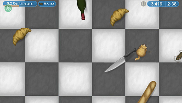 1、实验室内:注意小白鼠,当你比它小时接触会损失体积。猫能吃掉老鼠,同样对你造成威胁。第四小关里,碰到博士也会导致损失。