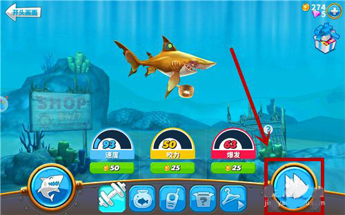 5、道具商店提供多种辅助物品,使用金币购买后能增强鲨鱼的生存与狩猎效率。