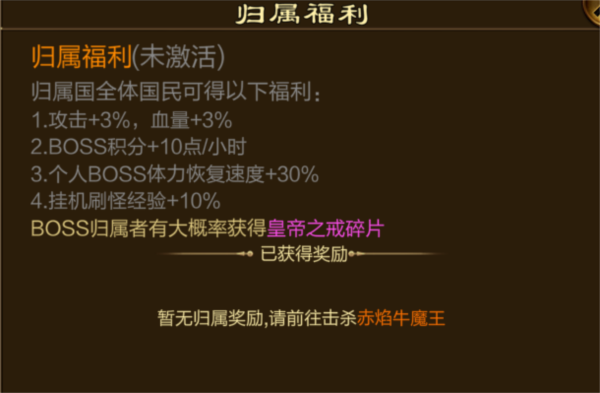 击倒最稀有的橙色首领,能为击杀国全体成员提供特殊属性加成。