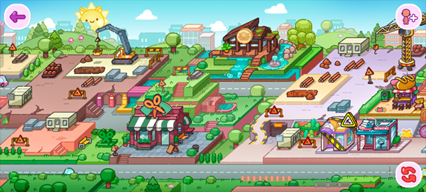 进入游戏场景后,能看到多种建筑;例如标有剪刀图案的理发店,点击即可进入体验。